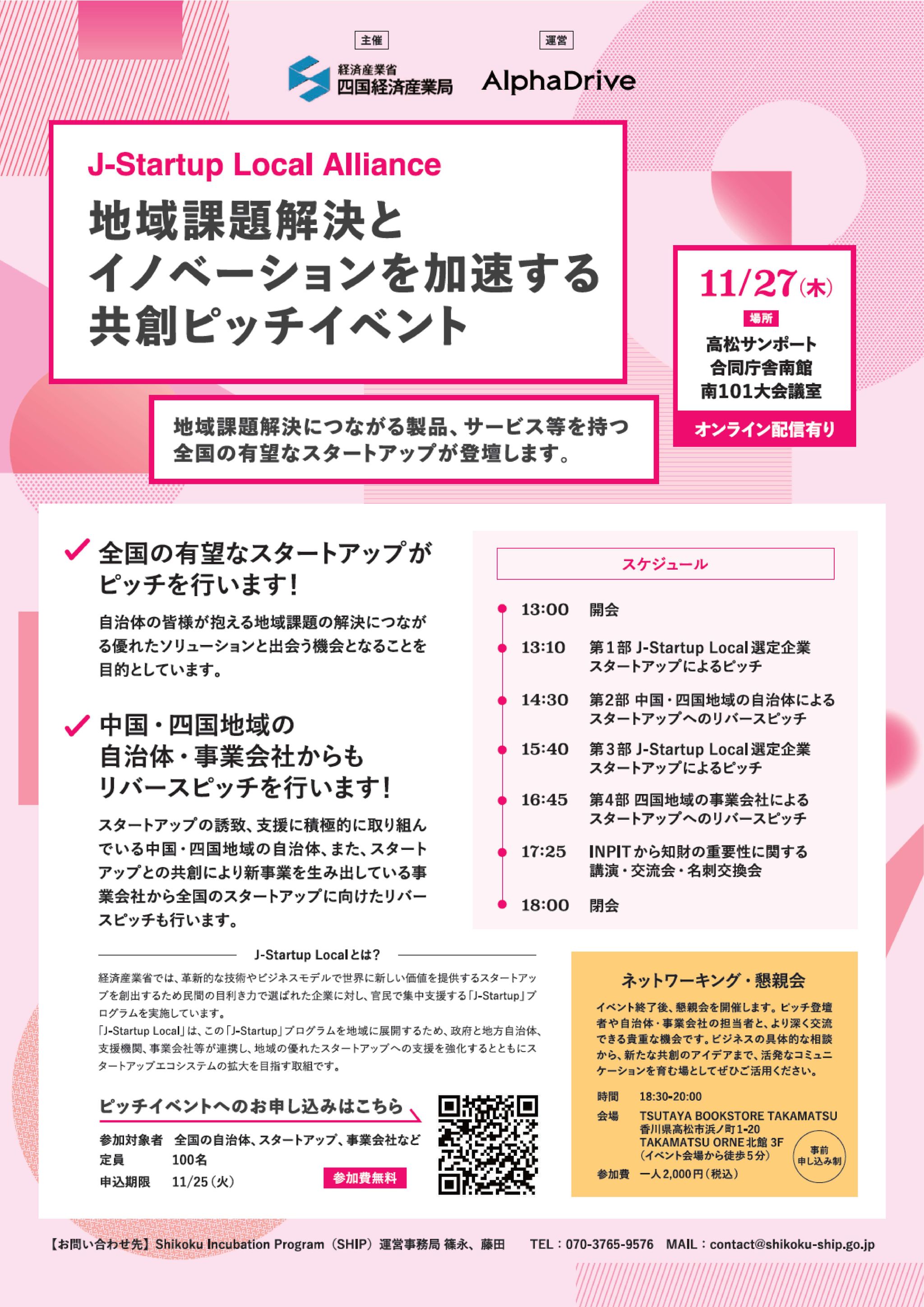 11/27(木)地域課題解決とイノベーションを加速する共創ピッチイベント「J-Startup Local Alliance」が開催されます!