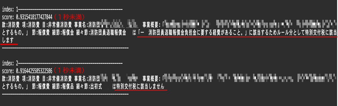図:特別交付税に関する省令を学習させたAIが1秒未満で導き出した対象経費判定の実証実験画面
