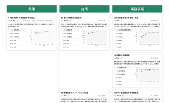 政策の全体像をツリー図で可視化!上位目標とKPIが一目瞭然。