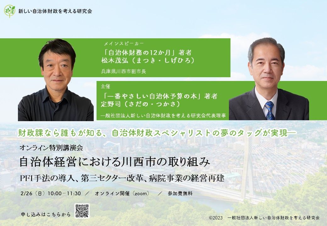自治体経営における川西市の取り組み~PFI手法の導入、第三セクター改革、病院事業の経営再建~オンライン特別講演会を開催します