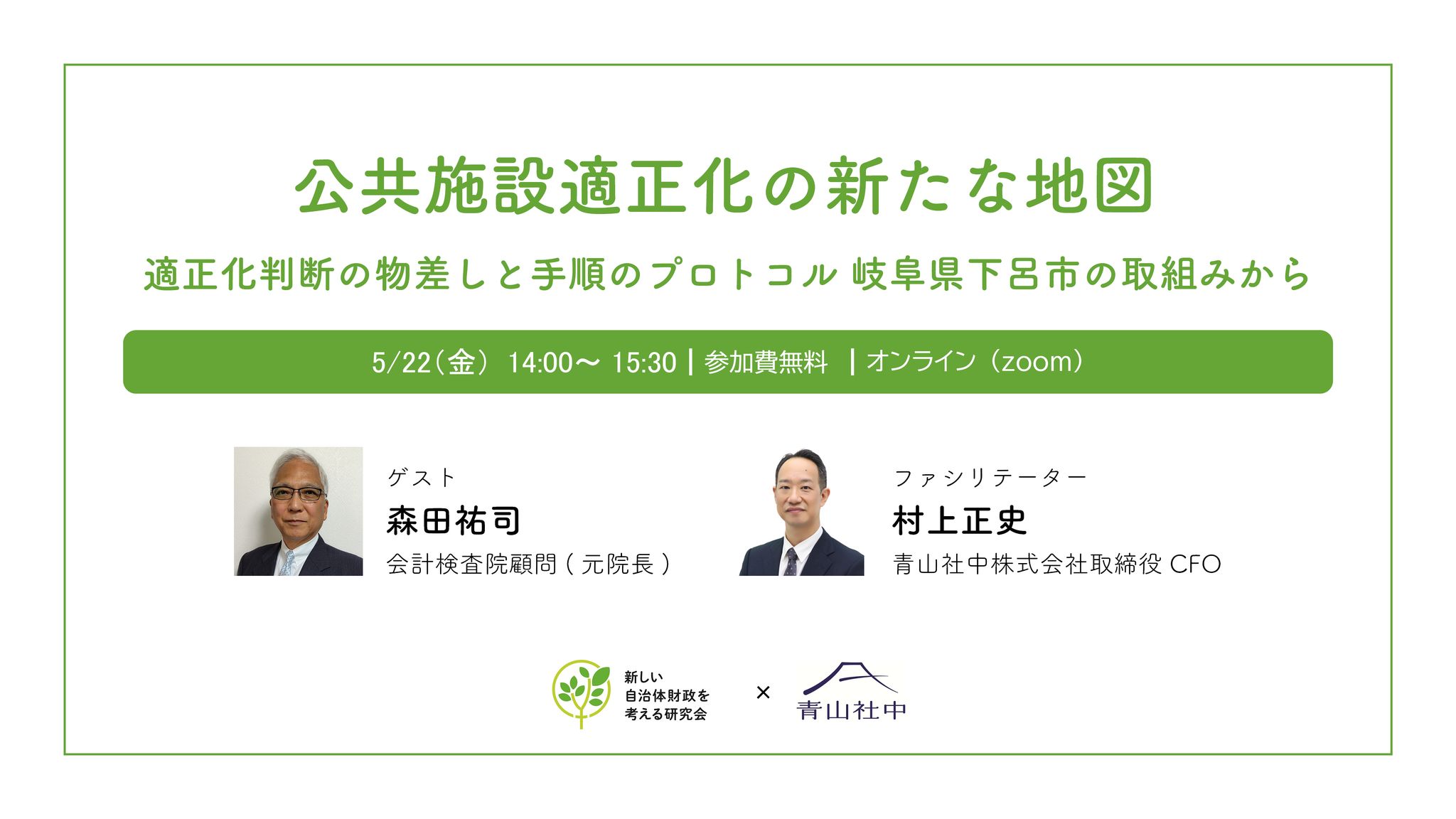 5/22(金)「公共施設適正化の新たな地図~適正化判断の物差しと手順のプロトコル 岐阜県下呂市の取組みから~」を開催します