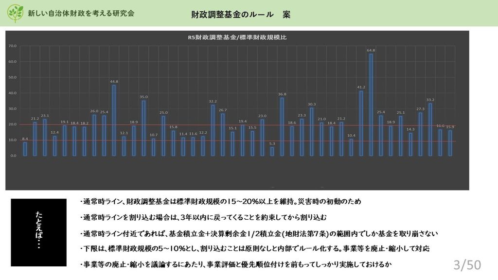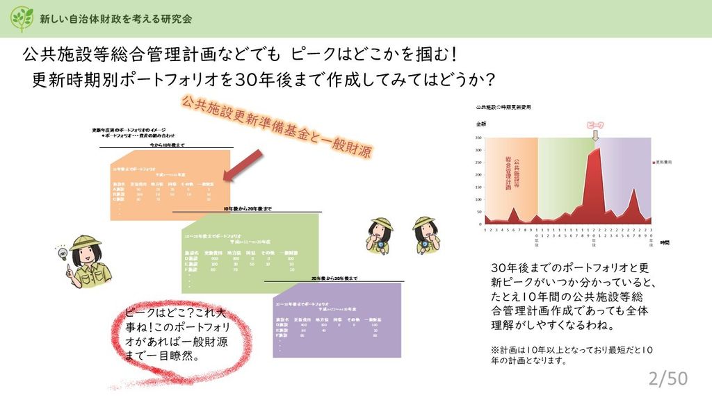 - 公共施設更新時の一般財源と財政調整基金のポートフォリオの考え方がとても印象に残った。財政を単年度ではなく、中長期かつ立体的に考える視点がとても面白かった。